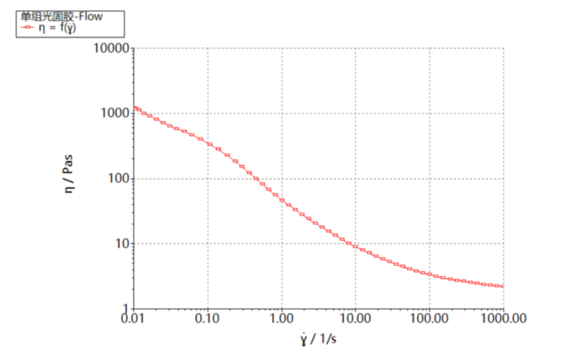 黏度曲線測試可以并可表征導熱膠在不同剪切速率下的變化趨勢,一般低剪切速率下黏度越大,抗沉降性能越好。